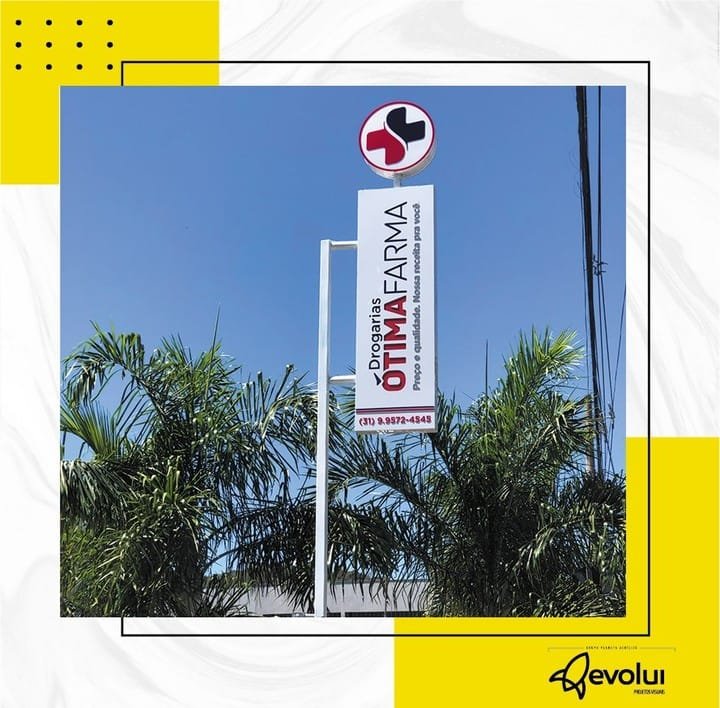 Os totens são estruturas verticais que funcionam como pontos de referência visual, facilitando a localização da farmácia e reforçando a identidade da marca. São especialmente úteis em estabelecimentos localizados em shoppings, galerias ou ruas movimentadas.